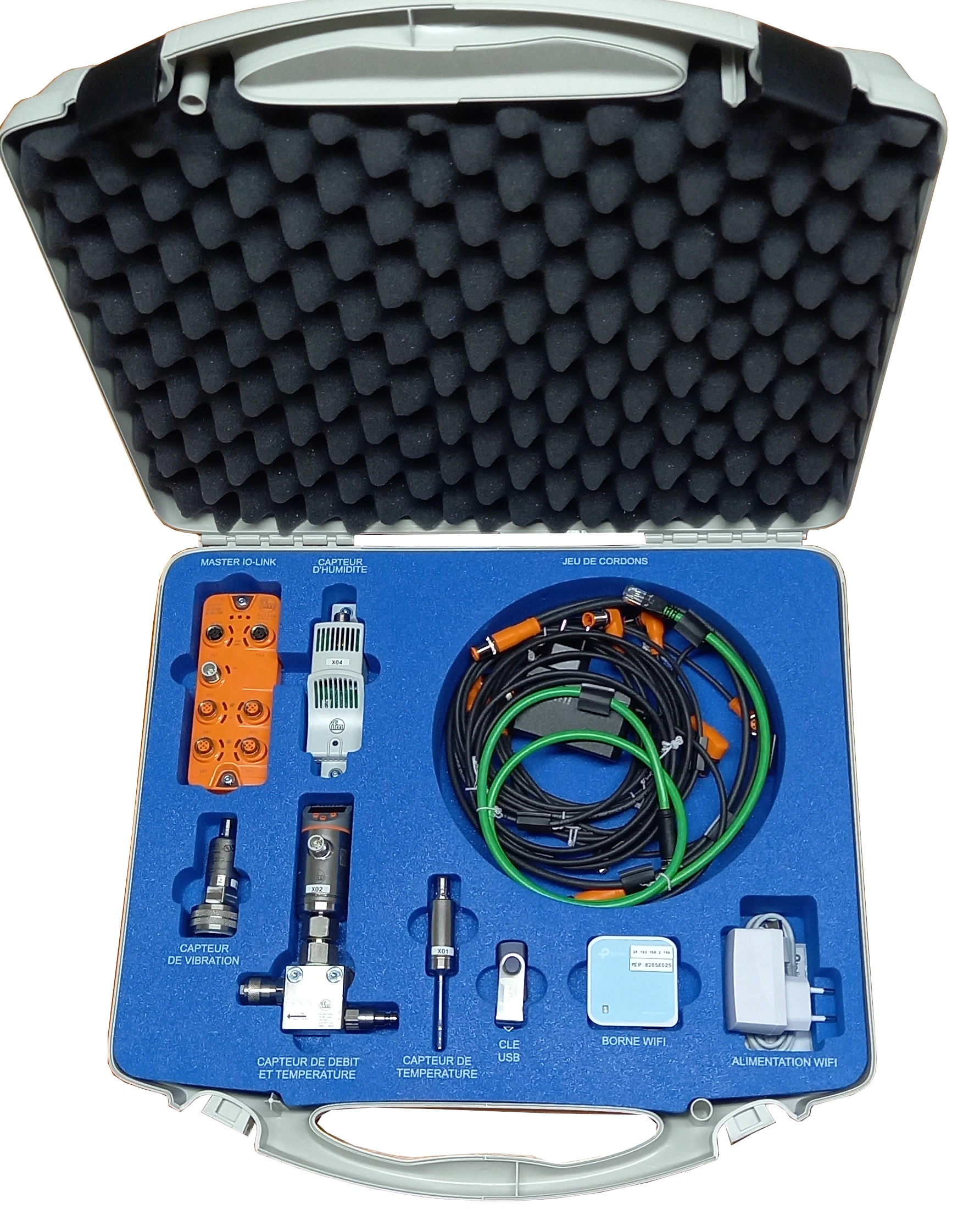 Kit de capteurs IO-Link en mallette pour le système EXTRUDICC. Acquisition et transmission de données sous EtherNet/IP et Wi-Fi.